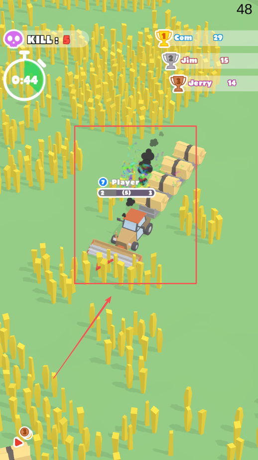 4、操控收割机时注意避开其他玩家的收割机,避免碰撞导致之前的努力白费,持续收割直至游戏结束,争夺更高排名。